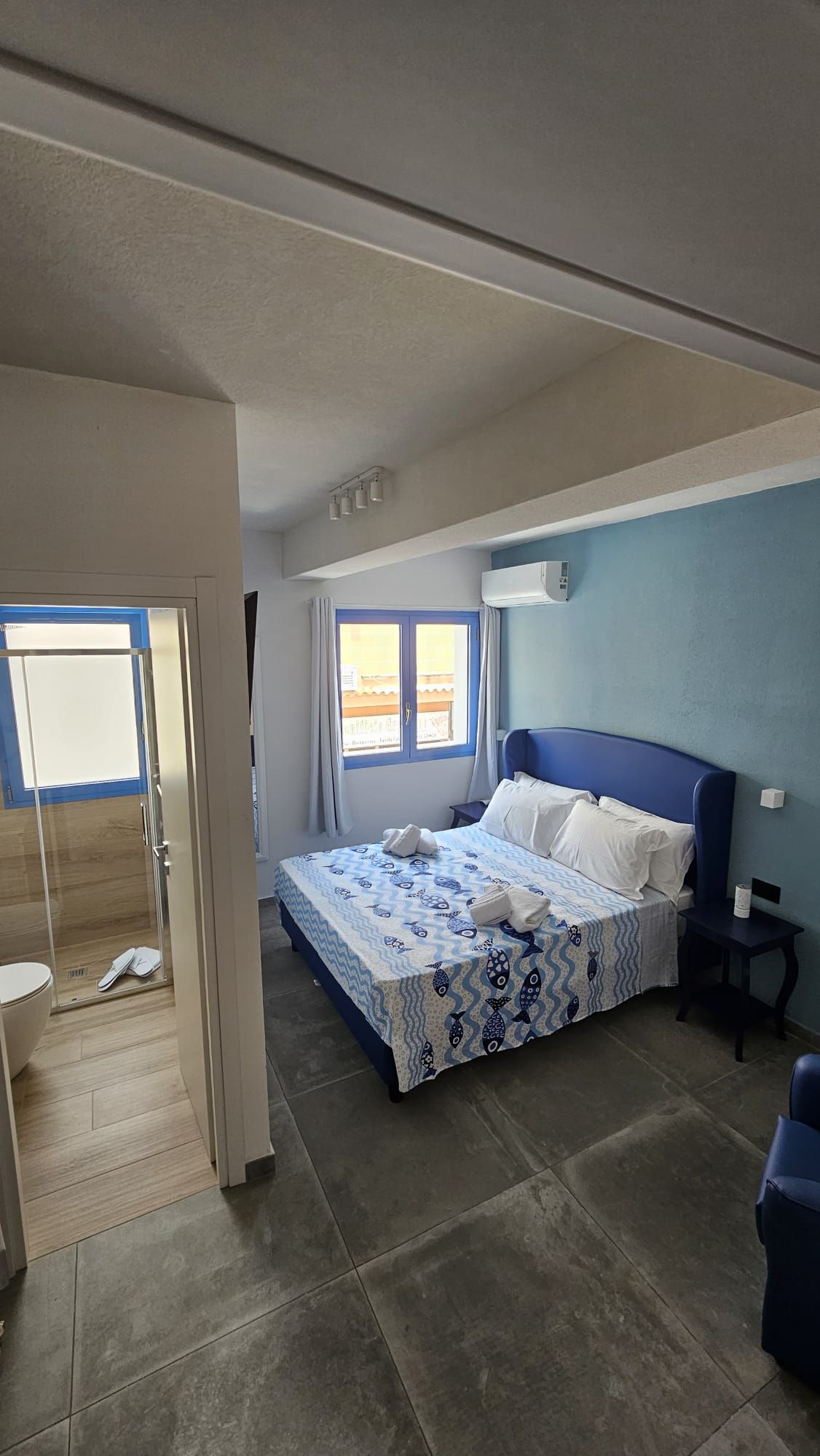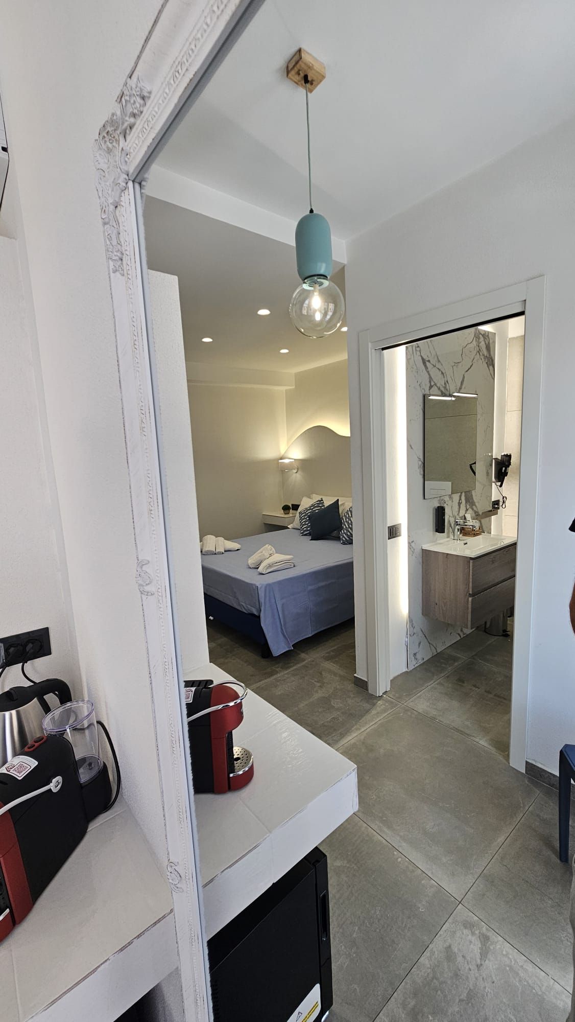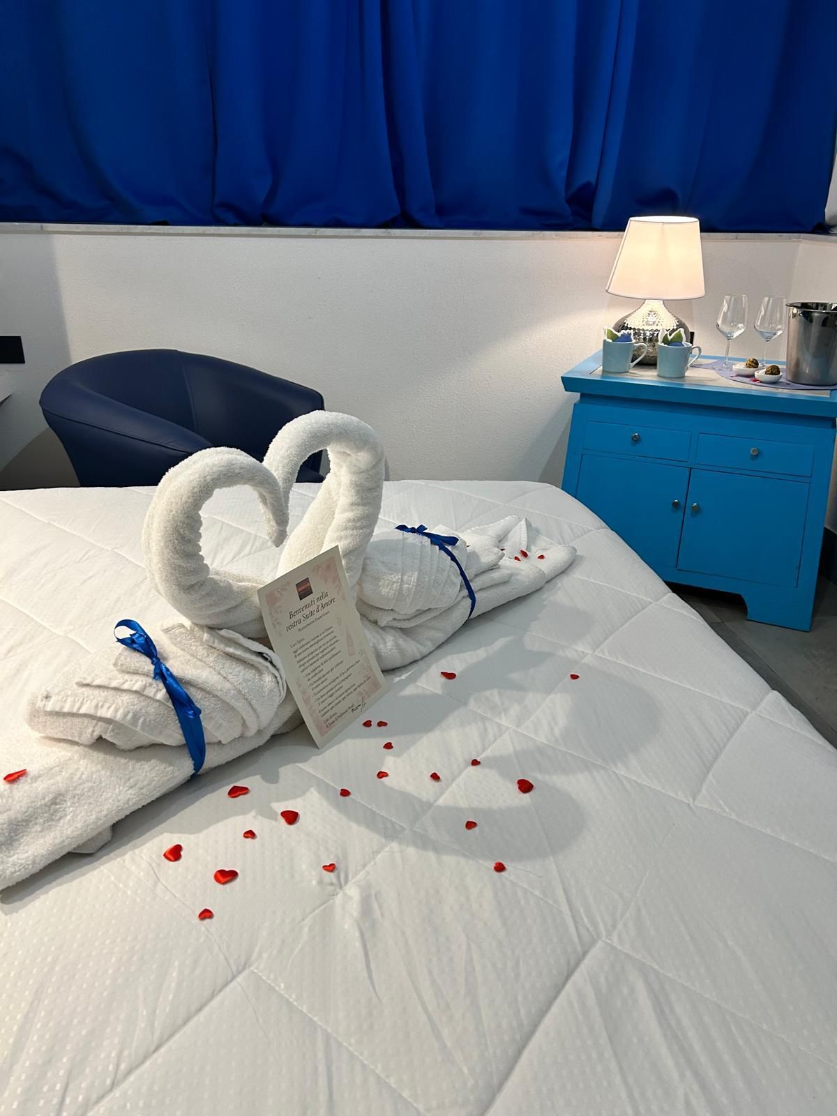 La nostra guest house, avvolta nei toni rilassanti dell'azzurro e del bianco che evocano le magiche atmosfere di Santorini, offre non solo un soggiorno lussuoso ma anche un vero e proprio angolo di paradiso: la nostra caratteristica piscina arricchita da una incantevole cascata in miniatura.