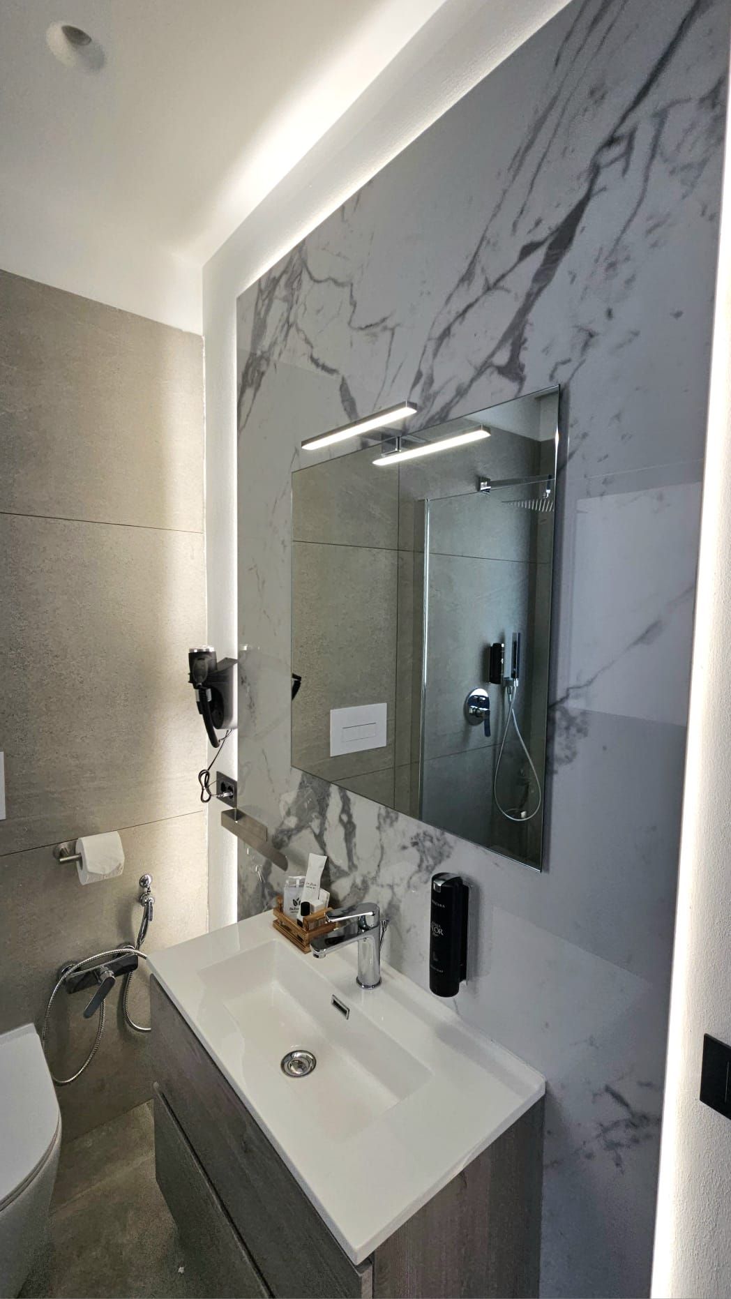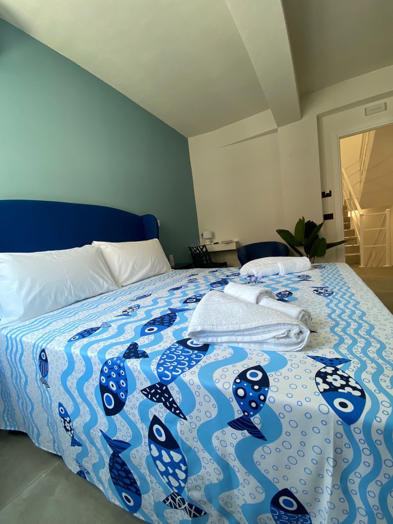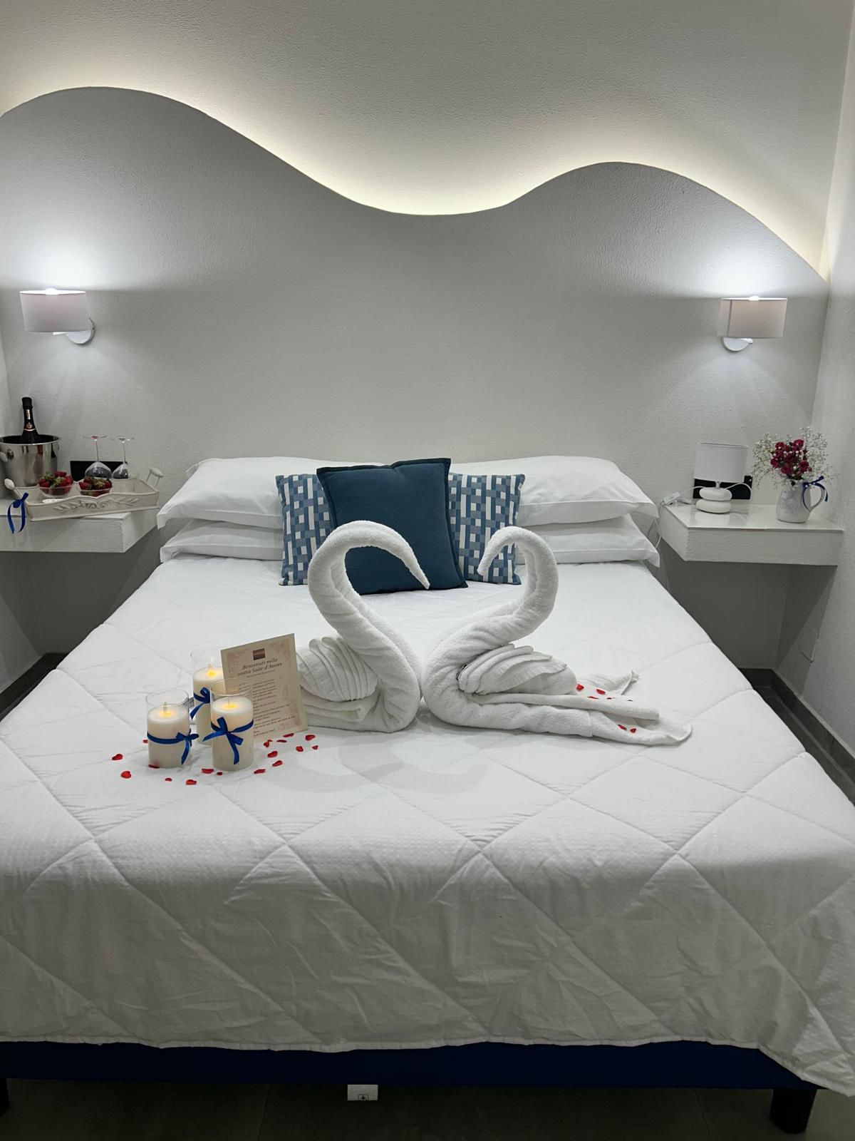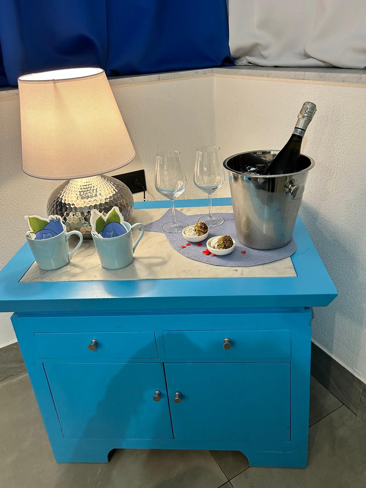 La nostra guest house, avvolta nei toni rilassanti dell'azzurro e del bianco che evocano le magiche atmosfere di Santorini, offre non solo un soggiorno lussuoso ma anche un vero e proprio angolo di paradiso: la nostra caratteristica piscina arricchita da una incantevole cascata in miniatura.